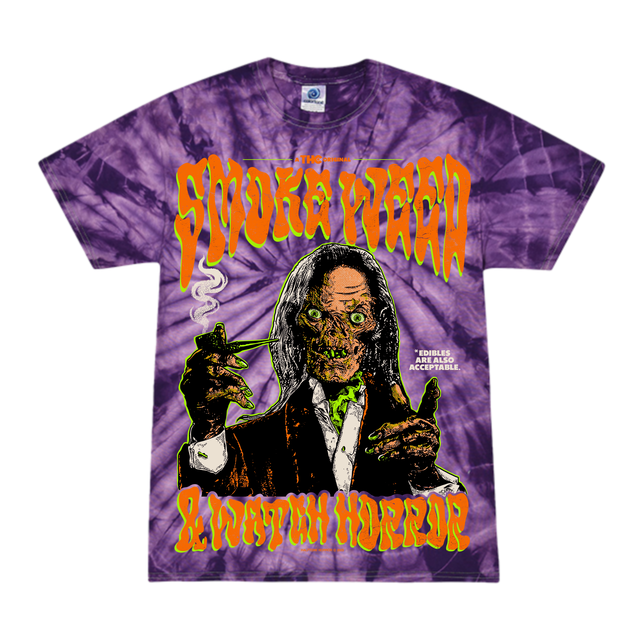 Featuring artwork by Cameron Buell (Halftone Horror). Shirts are screen printed on Gildan Soft Style Cotton for a true-to-size fit.