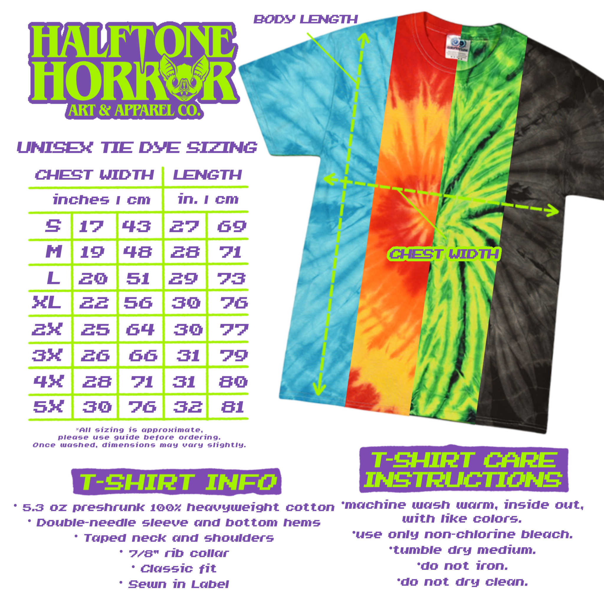 Featuring artwork by Cameron Buell (Halftone Horror). Shirts are screen printed on Gildan Soft Style Cotton for a true-to-size fit.