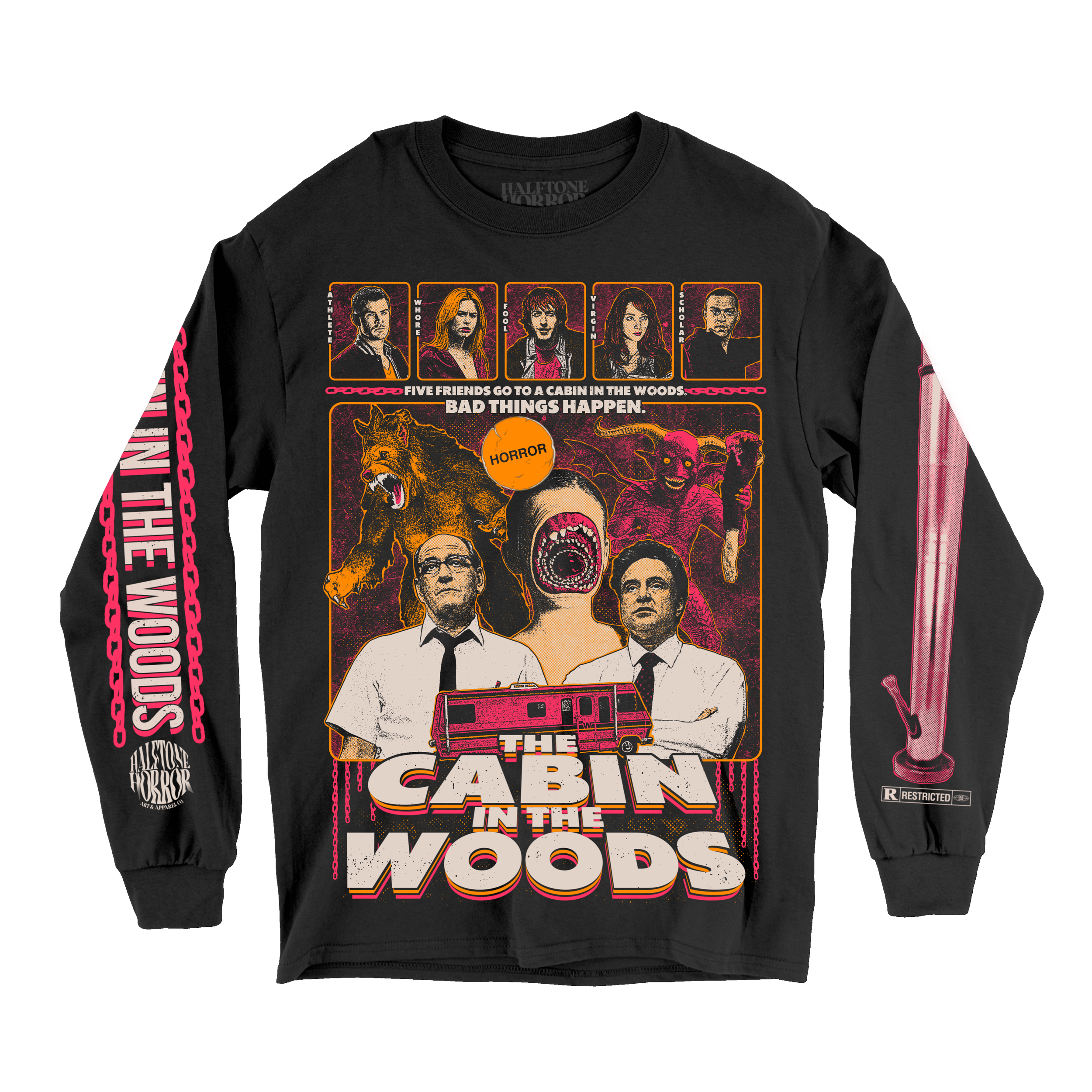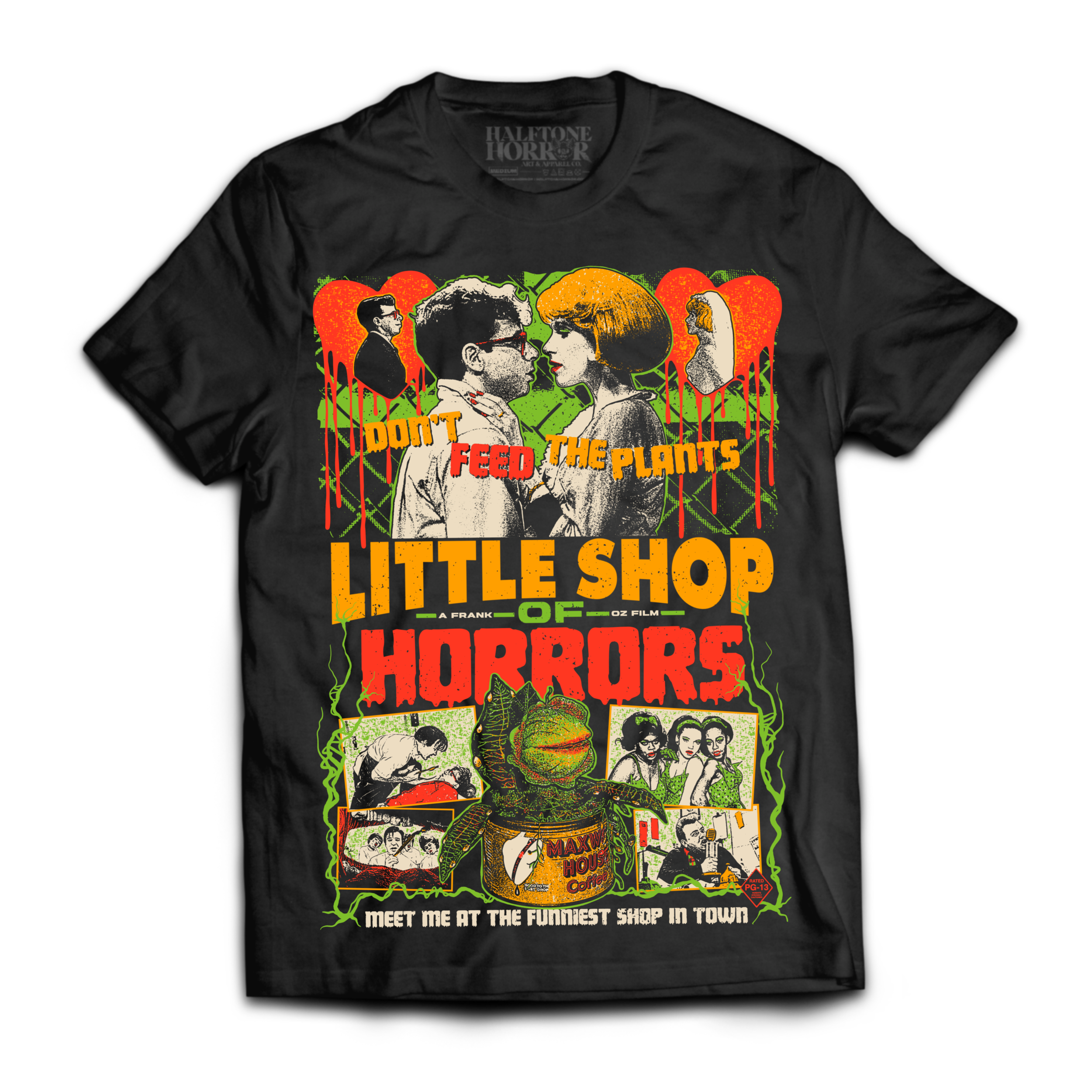 Featuring artwork by Cameron Buell (Halftone Horror). Shirts are screen printed printed on Gildan Ultra Cotton for a true-to-size fit.
