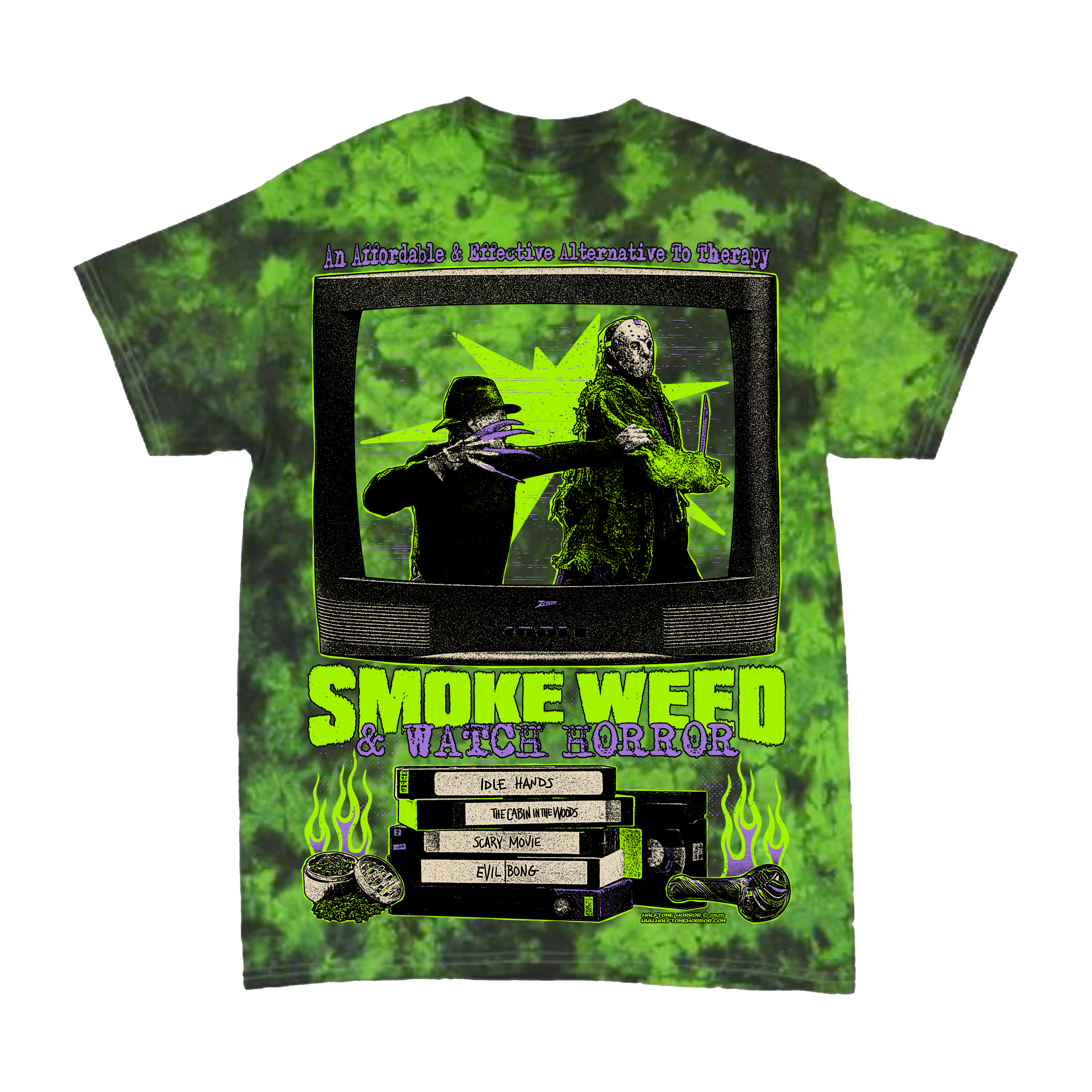 Featuring artwork by Cameron Buell (Halftone Horror). Shirts are screen printed on Gildan Soft Style Cotton for a true-to-size fit.